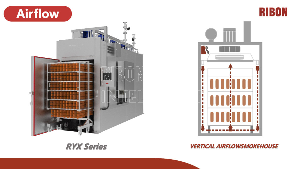 Эксклюзивная технология RUN-FLOW обеспечивает равномерный вертикальный поток воздуха, стабилизируя температуру и влажность во время обработки, гарантируя постоянный цвет и вкус продукта.